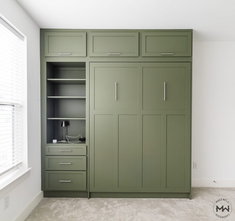 02 Oct Sage Green Shaker Murphy Bed with Built-In Shelving | Madewell Woodworks Austin Posted at 19:16h in by admin 0 Comments 0 Likes Share