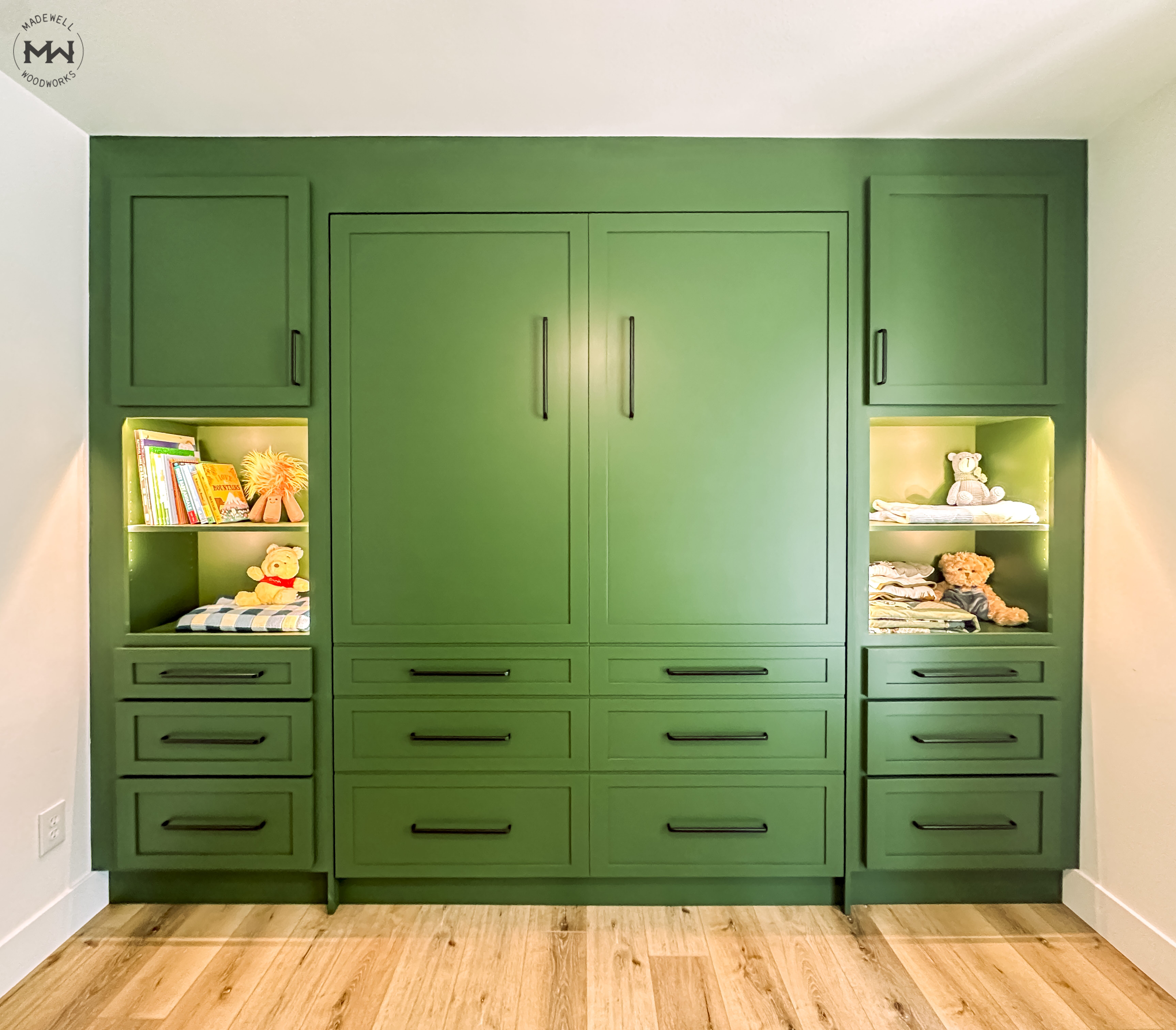 02 Oct Green Built-In Murphy Bed with Lighting – Madewell Woodworks Posted at 19:34h in by admin 0 Comments 0 Likes Share